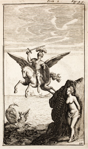 The winged horse Pegasos (Greek Πήγασος Pēgasos) originated from the blood of the killed Medusa.