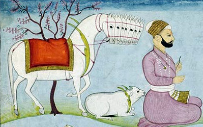 In Buddhism, Buddha with his servant Channa rides on his white horse Kantaka to the river Anoma, where he leaves it with his servant Channa.